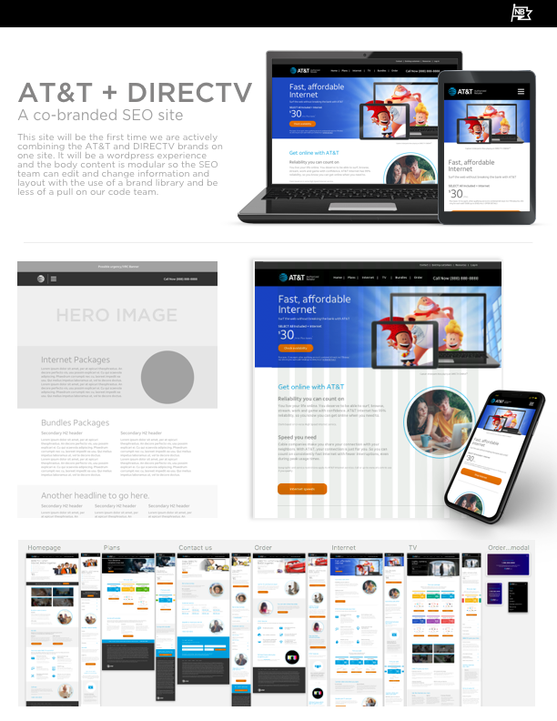 Here I have two examples of page layouts for Belk.com and a DIRECTV partner site. Each page utilizes the 2-column grid but give entirely different experiences based on visuals, alignment and brand standards.