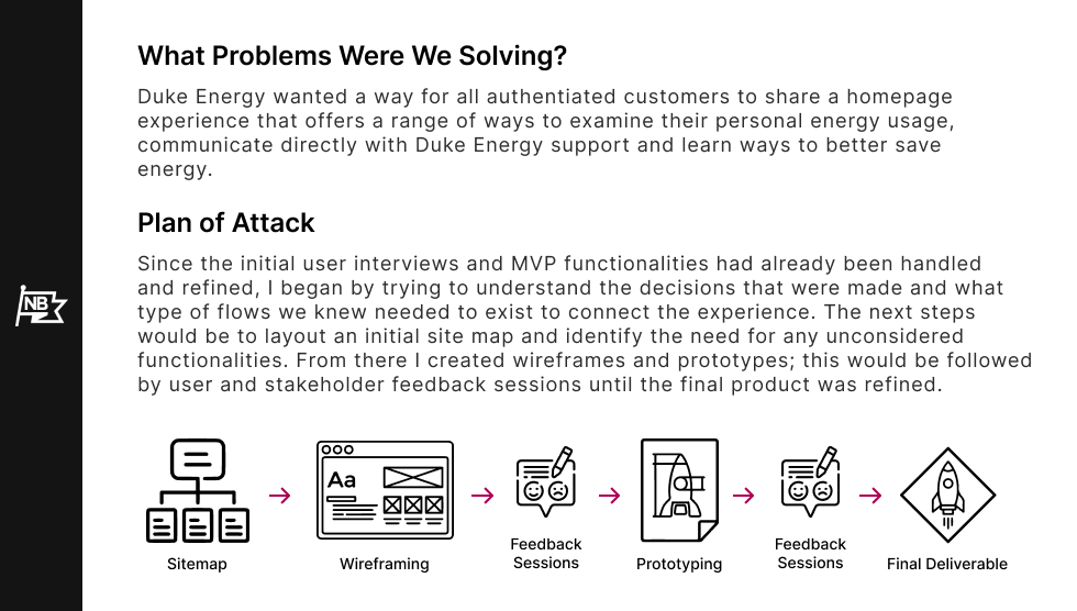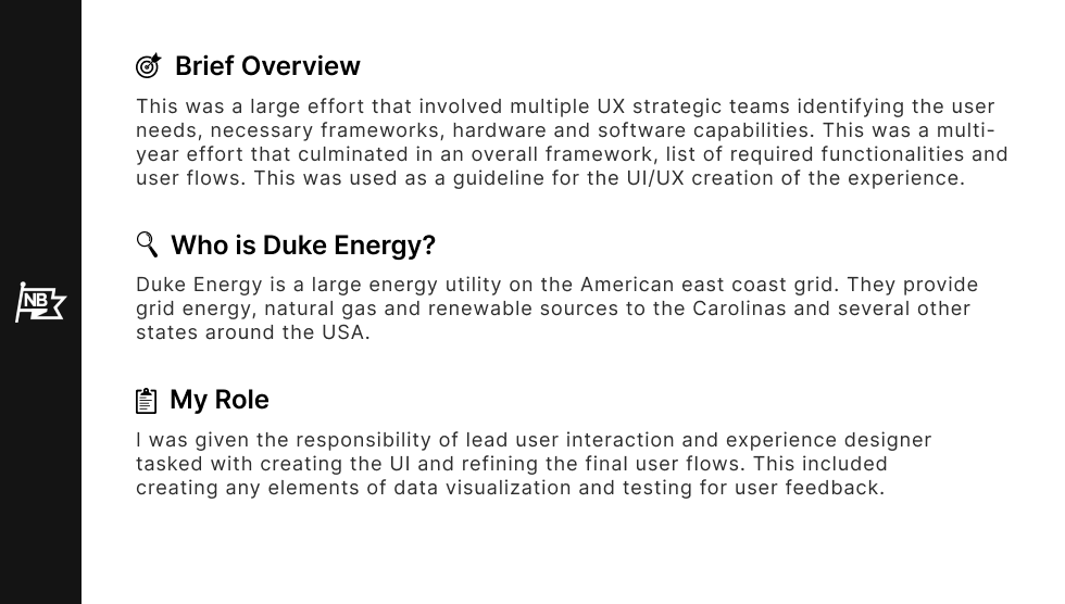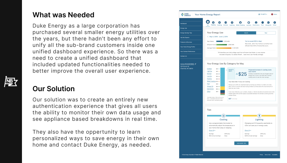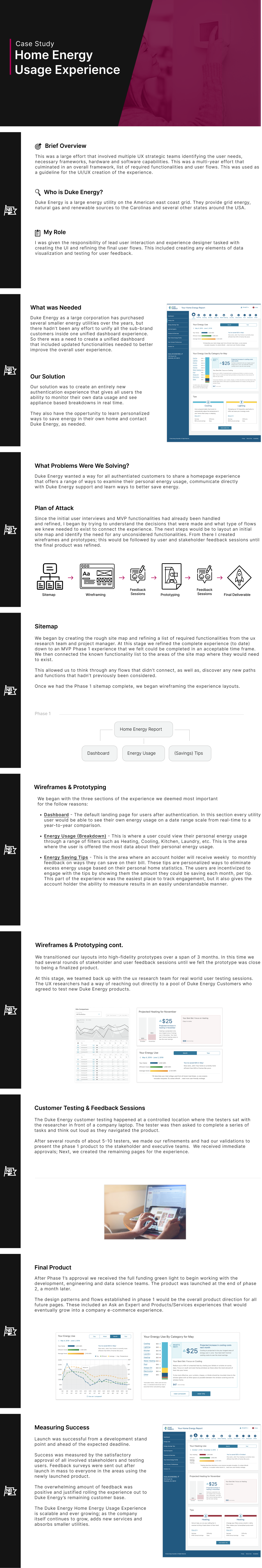 This case study is as examination of the Duke Energy authentication experience. It features functionalities that allow all customers to view their energy usage in real time and on a microscopic level.